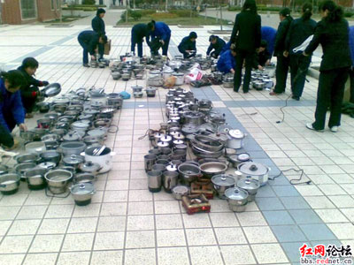 晓云指出,用热得快烧热水要比在天寒地冻的天气里顶着寒风去水房排好长的队打水方便的多:“另外学校的食堂也长期处于校内垄断状态,饭菜越来越难吃,份量越来越少,而价钱却越来越高,所以我们干脆自己用电饭锅、电磁炉开伙了,改善下生活。”
