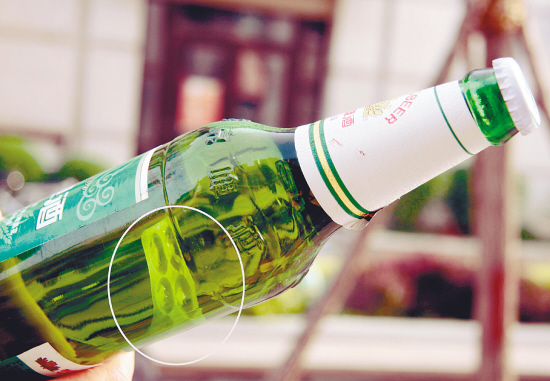记者看到,田先生所购买的啤酒是燕京啤酒沈阳分公司生产的,生产日期为2009年6月9日,保质期为360天。瓶盖没有开过封的痕迹,但是酒瓶内却有一空药板,药板中可存放10片药,但药板中已无药,药板来源不详。