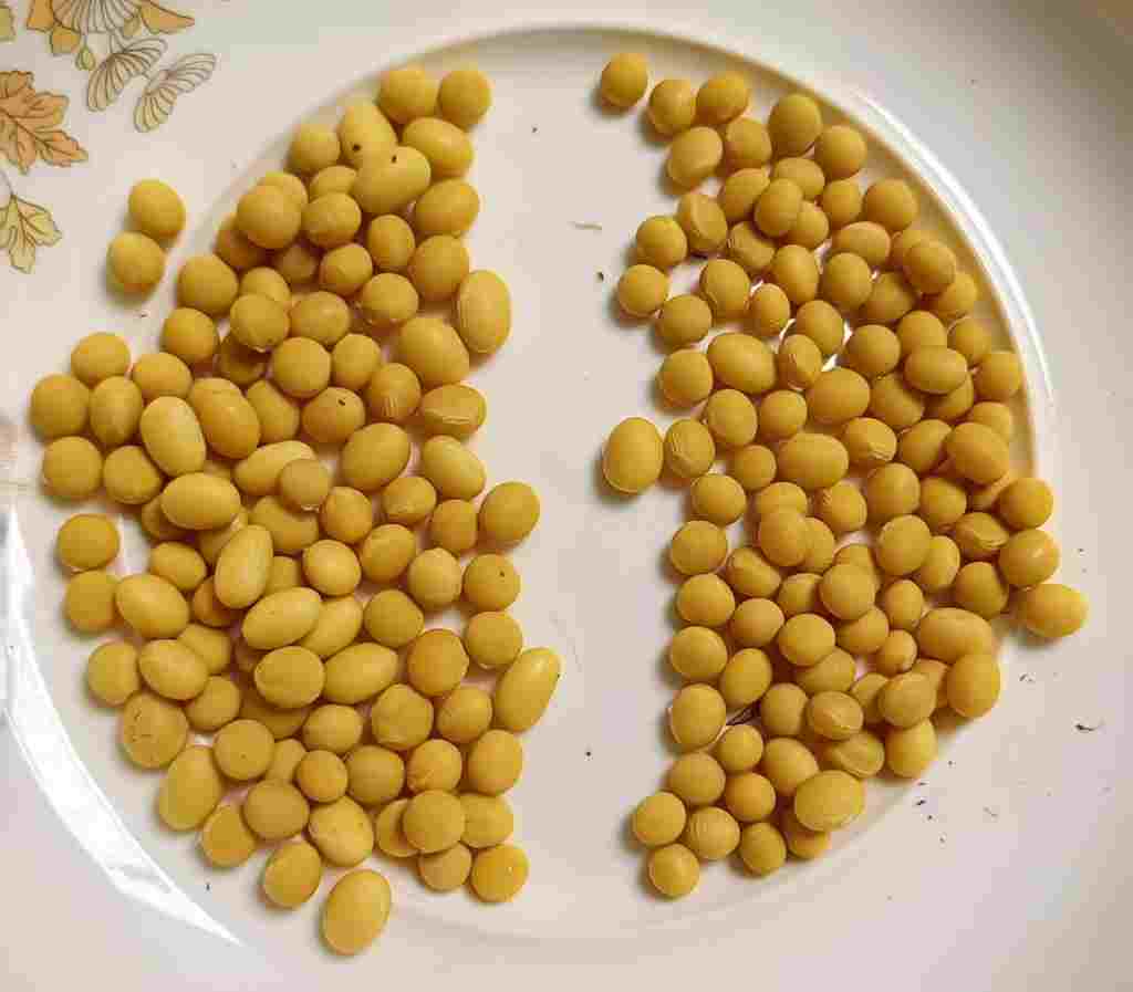 2025年9月24日采集的大豆粒,左边是喷施叶面肥的,右边未喷施叶面肥