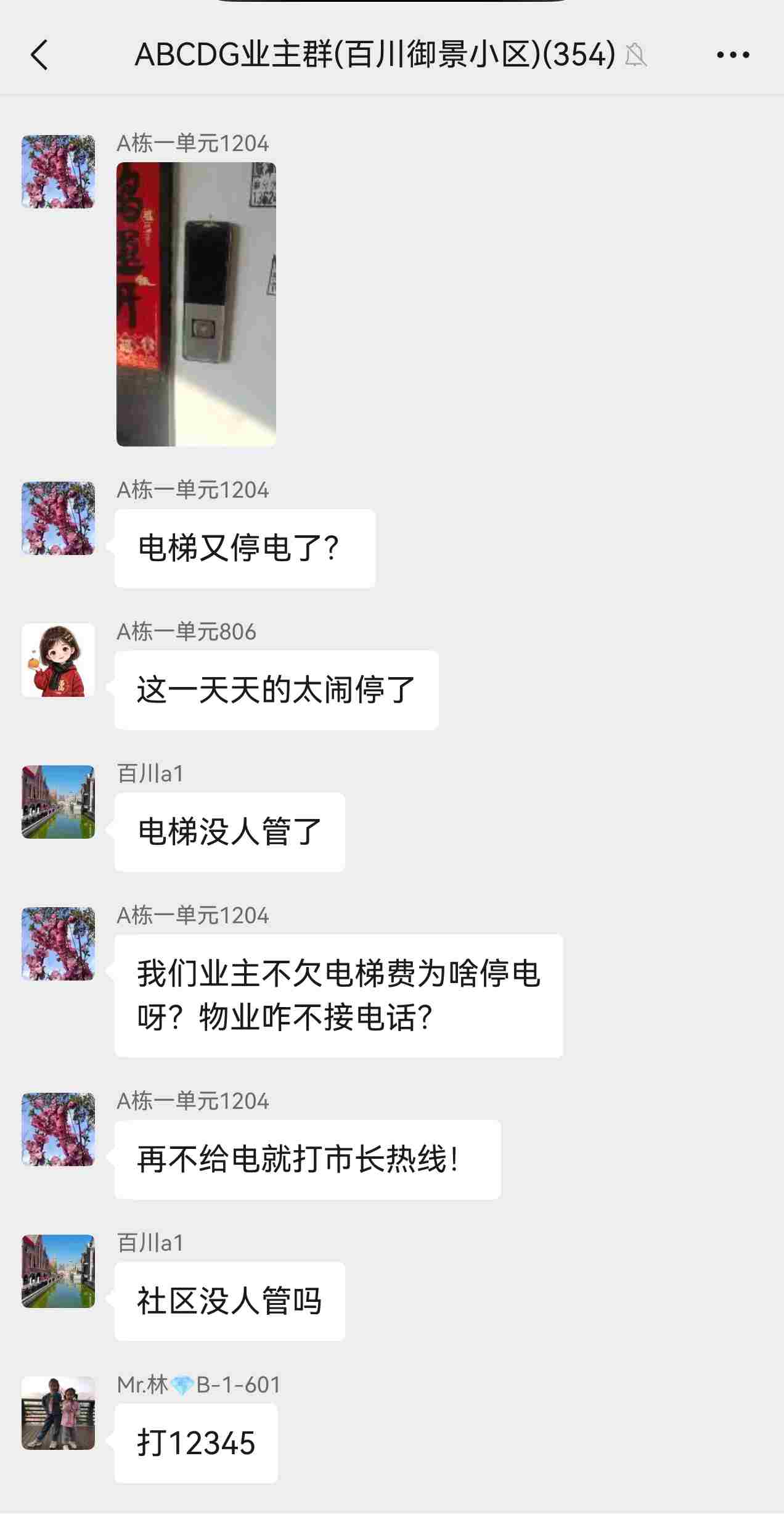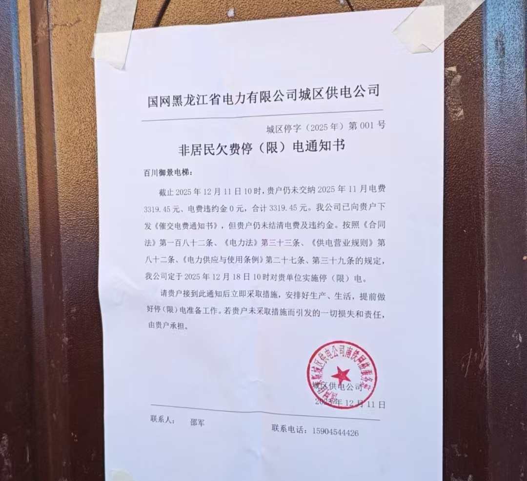 电梯自2025年11月起,每月都会停运几天,原因是物业欠缴电费。而物业对于这一系列问题,均以居民不交物业费导致没钱为借口进行搪塞。