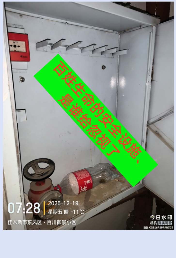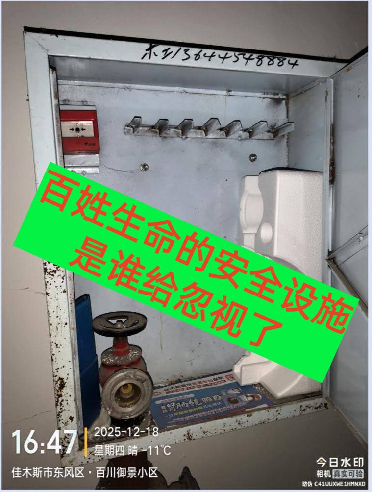 2026年1月12日,中国企业新闻网黑龙江频道佳木斯韩磊讯——在黑龙江省佳木斯市东风区,百川御景小区本应是居民安居乐业的温馨家园,然而如今却因消防隐患重重,成为了一颗随时可能引爆的“定时炸弹”,而这一切的根源,竟是小区物业的不作为与胡作非为。